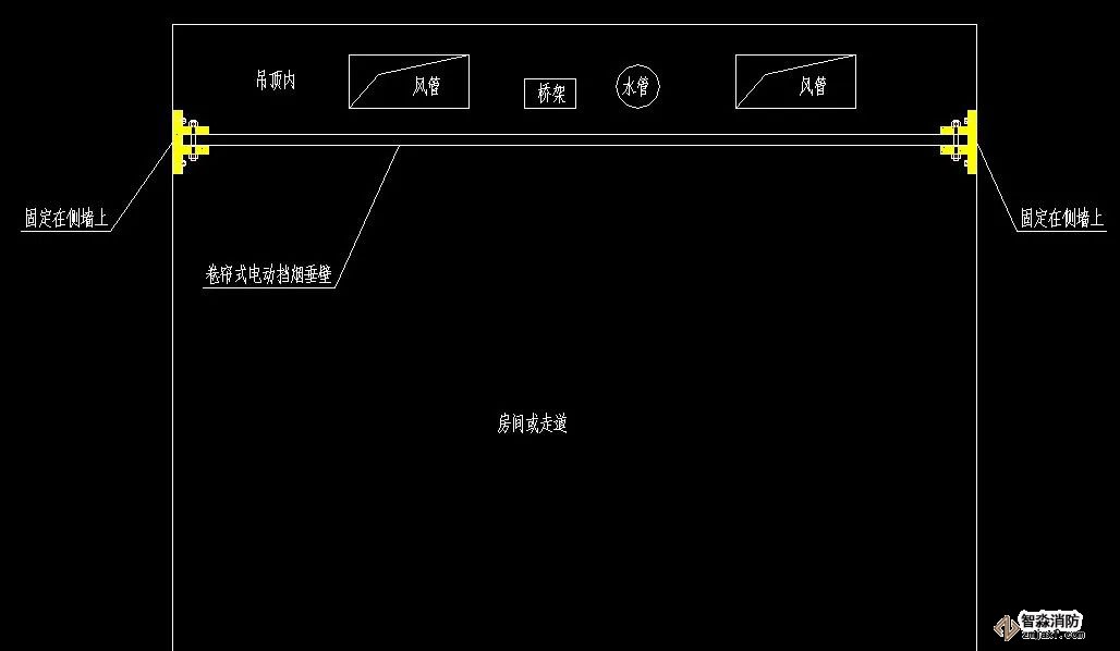 3、有吊頂時,電動擋煙垂壁的安裝