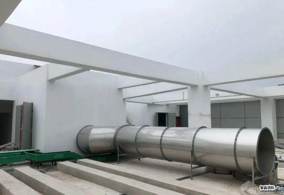 2、地下樓梯間加壓送風,最頂部設置1m2的固定窗,核心筒在內部,采用土建風道延伸至室外
