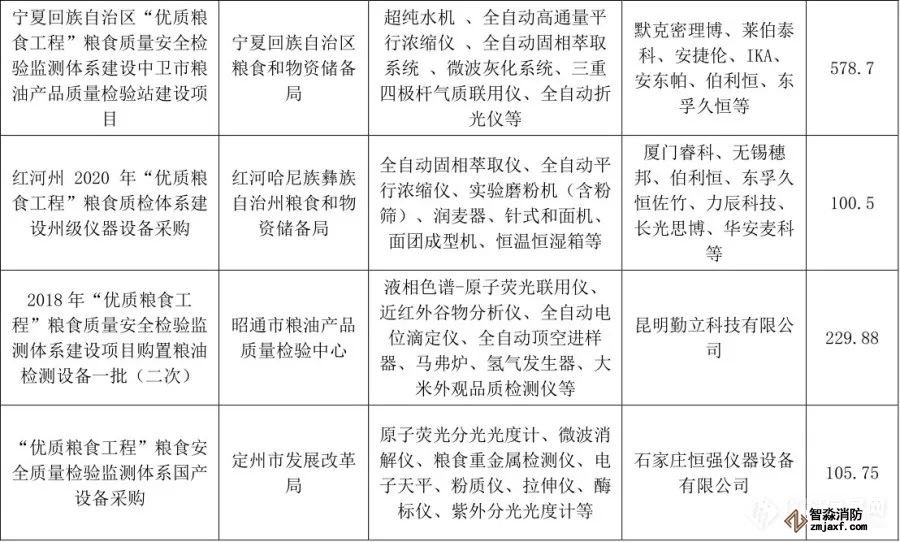 “優質糧食工程”儀器相關中標項目列表(1月1日至6月30日)