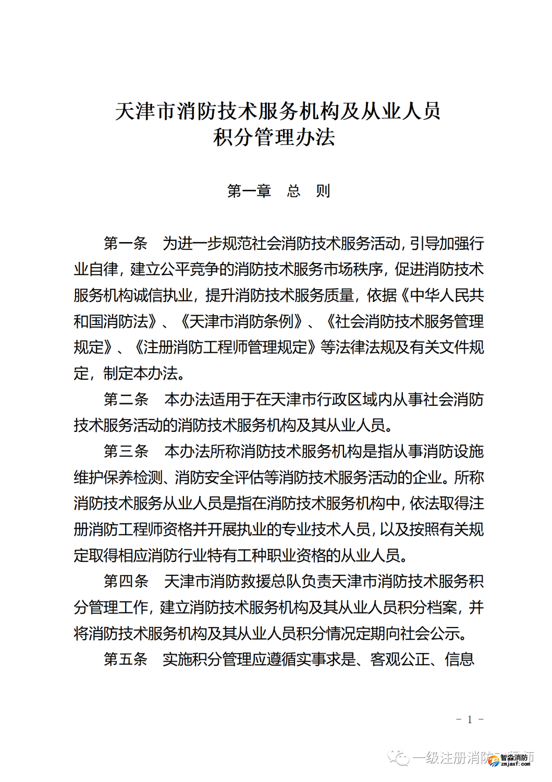 天津總隊:《消防技術服務機構及從業人員積分管理辦法》的通知