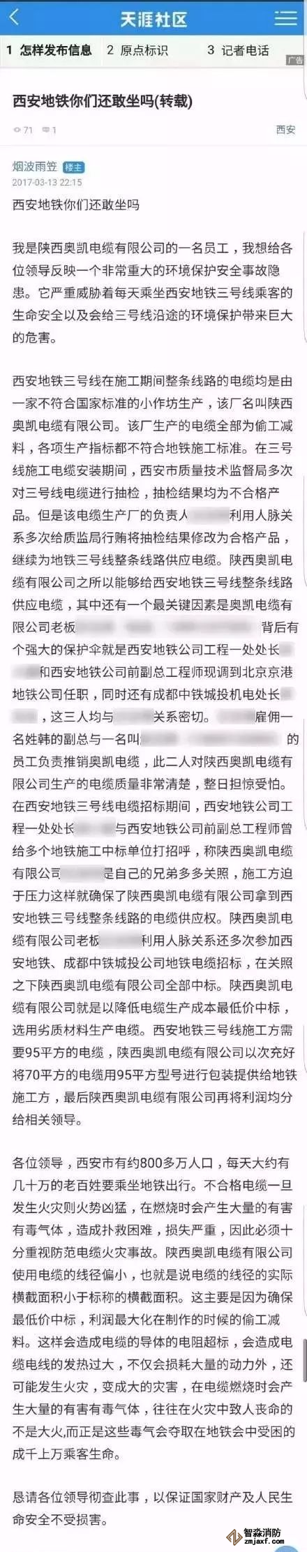 1. 2017年3月15日,有網(wǎng)友發(fā)帖質(zhì)疑地鐵三號(hào)線電纜相關(guān)問(wèn)題: