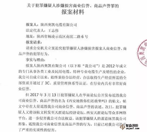舉報(bào)帖發(fā)出后,陜西奧凱電纜有限公司不僅不承認(rèn)問(wèn)題,還反咬一口,聲稱該帖文中的不實(shí)言論損害了公司的聲譽(yù),造成了極其嚴(yán)重的惡劣影響。