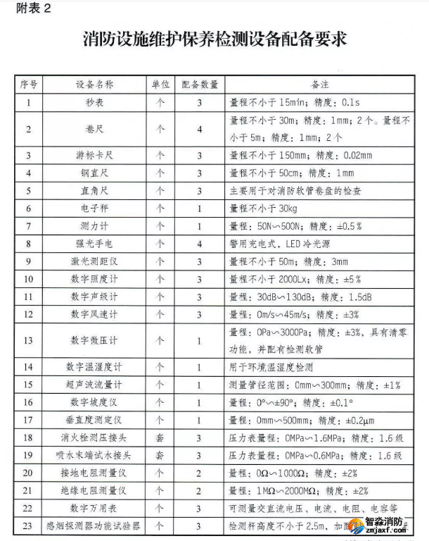 智淼消防設施維護保養檢測設備配備要求