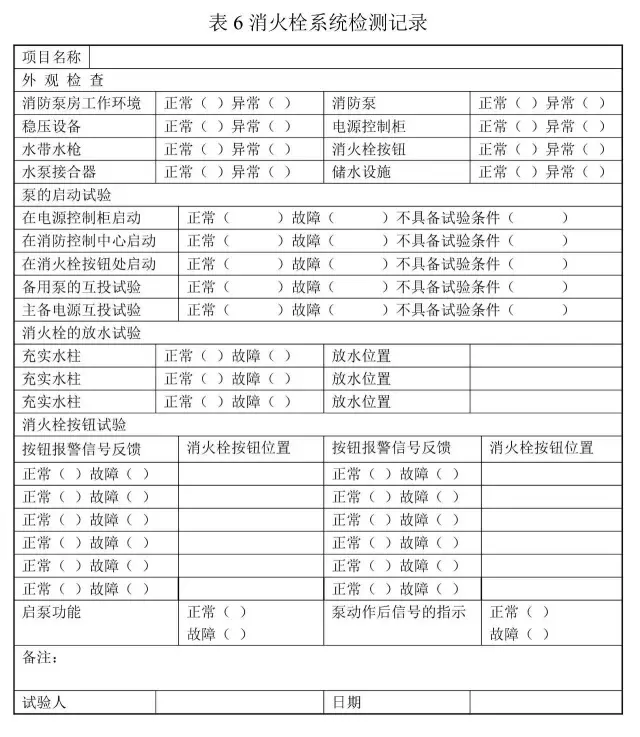 (1)外觀檢測。檢測室內外消火栓給水管道、消防水池/水箱/穩壓裝置、消火栓水槍及水帶、消火栓按鈕、消防水泵及各類管網閥門等是否正常。